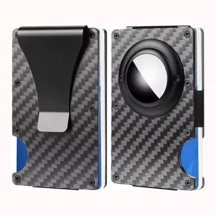 Slim Business Carbon Fiber Airtag Wallet Card Holder Rfid Metal Aluminum Case with Cash Strap Black