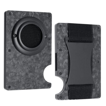 Slim Business Forged Carbon Fiber Airtag Wallet Card Holder Rfid Metal Aluminum Case with Cash Strap Black