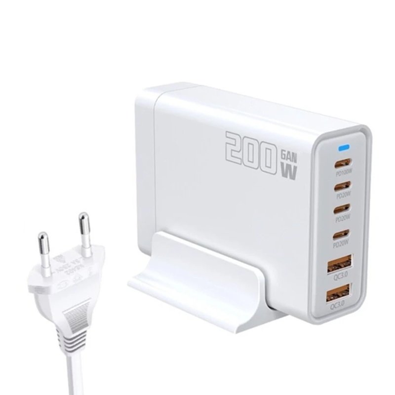 200W USB*2+Type-C*4 6 in 1 GaN Desktop Fast Charger EU Plug White