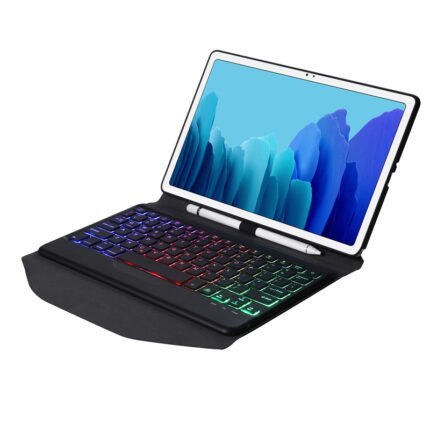 Triangular Leather Case with Bluetooth Keyboard & Backlight for Samsung Galaxy Tab A7 10.4 2020 Black+Black