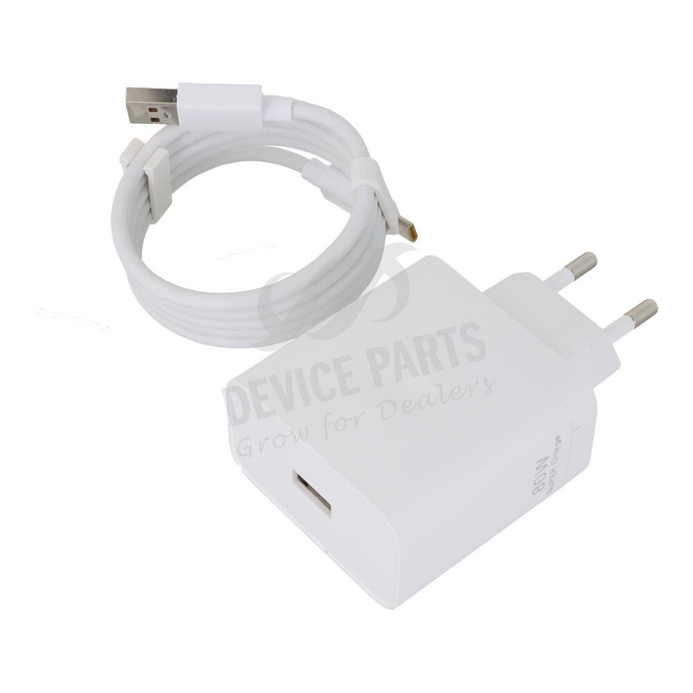 80W USB Charger with 1M Type-C Cable without Package for Oppo EU Plug OEM White