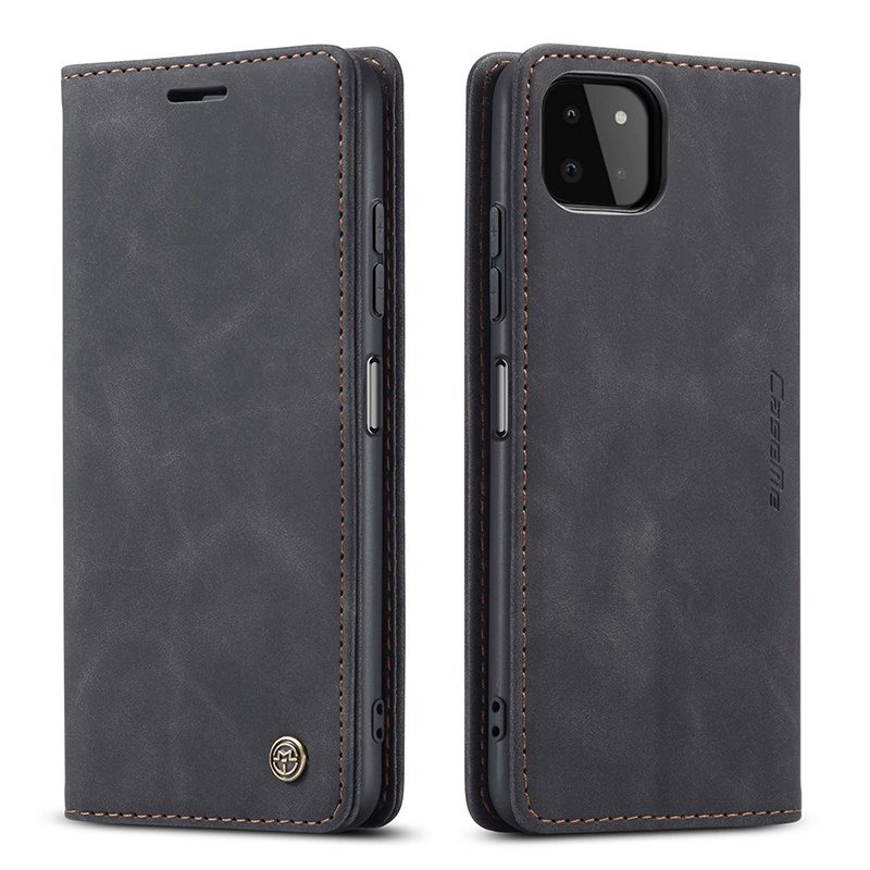 CaseMe-013 TPU Business Style Vintage Matte Horizontal Flap Leather Case for Samsung Galaxy A22 5G Black