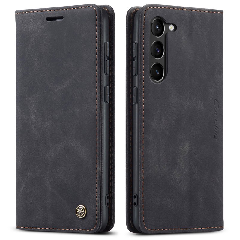 CaseMe-013 TPU Business Style Vintage Matte Horizontal Flap Leather Case for Samsung Galaxy S23 Black